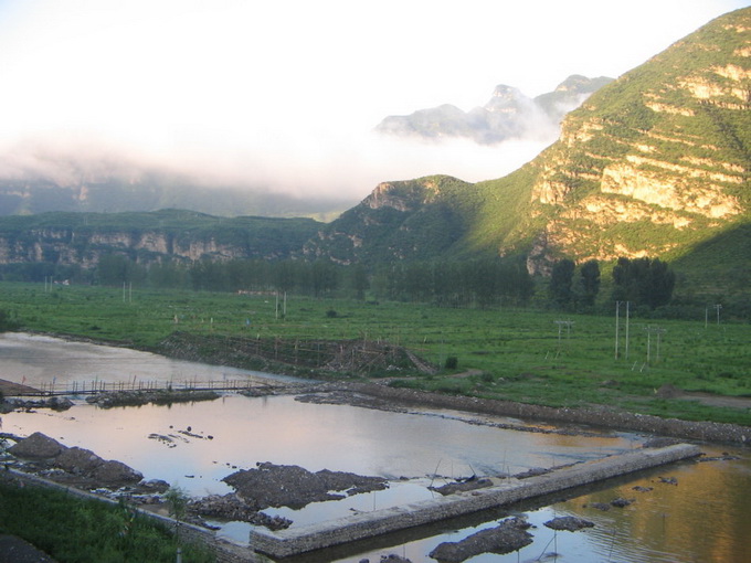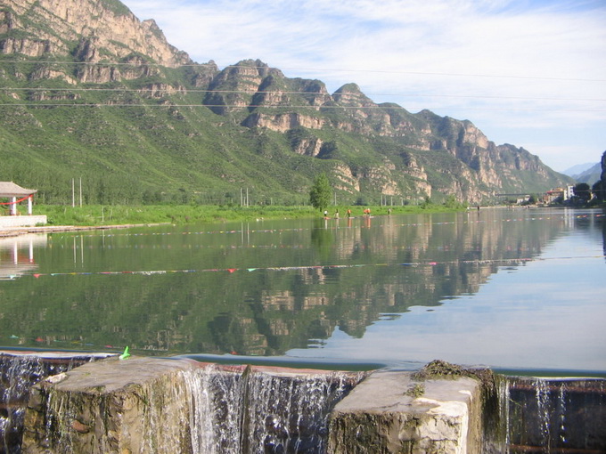 午饭过后(事先声明我们这两天吃的几乎是野菜宴),我们兴致勃勃的赶往野山坡最出名的景点——百里峡。这个景区由三条幽深峡谷——海棠峪、十悬峡、蝎子沟组成,本人大言不惭的说也着实去过不少美丽的景区名胜,百里峡给我最深的印象便是这里的岩溶、山泉、瀑布景观,它的妙处就在与它一个“幽”字,飞转于山间深处冰爽的泉水,再踏上妙趣横生的圆石,我们如小鸟似的来回穿梭跳跃!那一帘如轻纱般的瀑布,飞扬着、飘洒着,为寻当刺激我们冲到了那片瀑布下面.....然后是一阵尖叫!